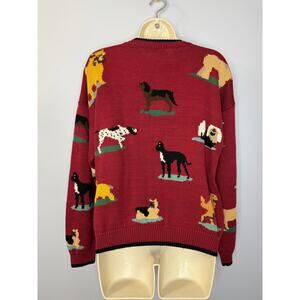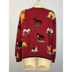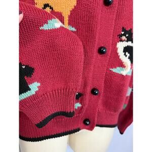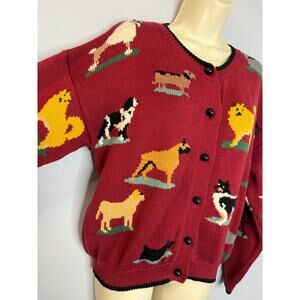 VTG Christine Foley Dogs Knit Cardigan Sweater Women's S (1) Red 90s Dog Pets