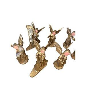 VTG Christmas 3” Hong Kong Plastic 8 ANGEL FIGURINES With Musical Instruments