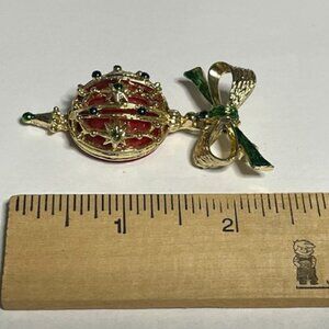 VTG Christmas Ball Ornament Brooch Enamel & Acrylic Movable Brooch Pin 1"x2.25