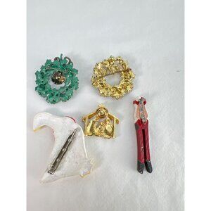 VTG Christmas Brooch Pin Lot Goose Wreaths Nativity Santa Holly Wreath