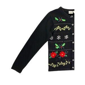 VTG Christmas Cardigan Sweater Medium Jason Maxwell Beaded Snowflakes Poinsettia