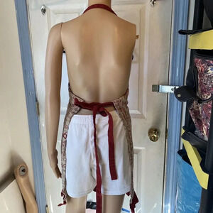 Get into the Christmas spirit with this vintage kitchen apron from Aman. The red and tan color scheme, along with the festive pattern, makes it the perfect addition to your holiday wardrobe. Measuring 26 inches in width and 32 inches in length, this apron is designed for adult wear and features a convenient pocket for storing small items.
