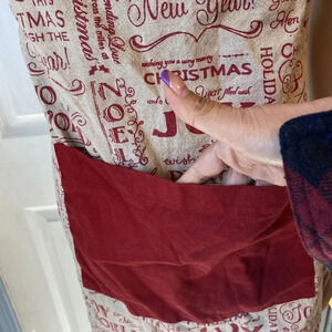 VTG Christmas Holiday Bib Apron Sz 26”x32” w/Pocket Red Tan Love Joy Cottagecore