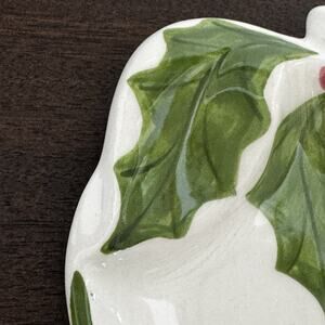 VTG Christmas Holly Apple Shaped Plate N.S. Gustin Co Nut Candy Trinket Dish USA