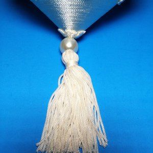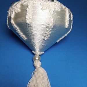 VTG Christmas Ornament White Eyelet Lace Tassel Tree Rhinestone Faux Pearls