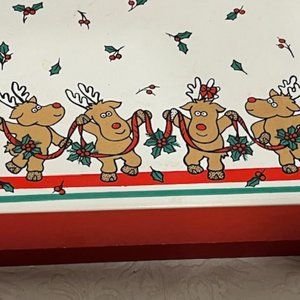 VTG Christmas Reindeer Dancing Ceramic Tile Trivet w/Red Wood Frame 7.25"