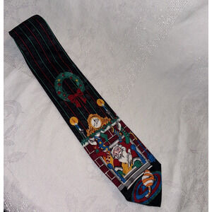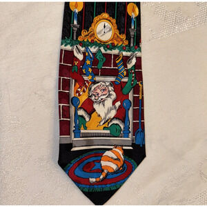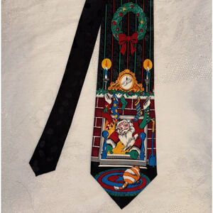Christmas tie, Santa novelty tie, fireplace tie, cat tie, holiday silk necktie, Addiction brand tie, vintage Christmas accessory, holiday party tie, 1990s silk tie, Christmas gift for him