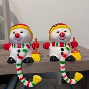 The set includes two stocking holders, each with a unique snowman design. The multicolor holders are perfect for hanging your stockings and will add a festive touch to your home. Don't miss out on this opportunity to add a piece of vintage charm to your Christmas decorations.