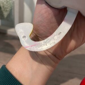 Item is vintage and has some signs of wear. See photos to see the scratches on coloring & also one has issues with the padding at the bottom. Both still sit perfectly on a shelf and are so cute!