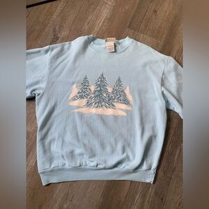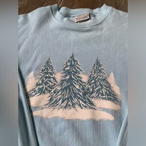 VTG Christmas Sweater Snowy Trees Winter Graphic Crewneck Sweatshirt Blue L