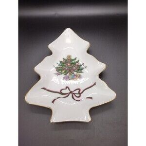 VTG Christmas Tree Trinket Candy Dish Tray Fine Porcelain China Russ Berrie Co