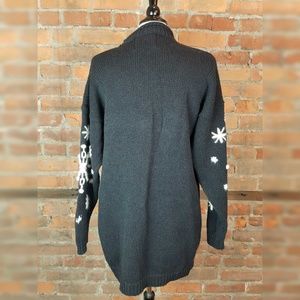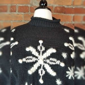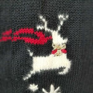 VTG Christmas Women's Sweater Tunic Length Black w/Reindeer&Snowflakes Sz 18/20