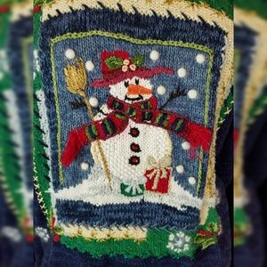 VTG Christmas Women's Sweater Tunic Length Navy w/Santa&Snowflakes Sz L