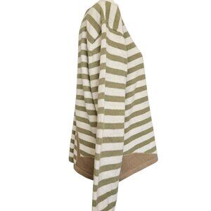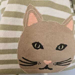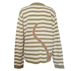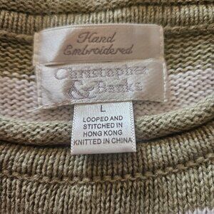 Vintage Christopher & Banks Hand Embroidered Women's Sweater Size Large L. Striped. Beautiful Brown Cat Knit Embroidered details. Cat Lady, Cat Lover, Kitty. Color Cream with Green. Light Shoulder pads. 55% Ramie 45% Cotton.