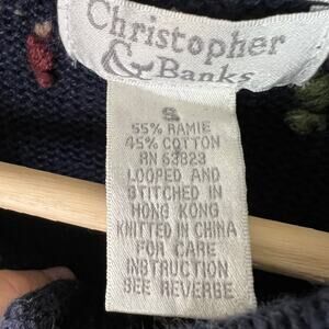 VTG Christopher & Banks Women's Small Navy Hand Embroidered Christmas Cardigan