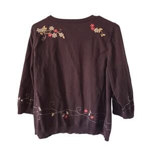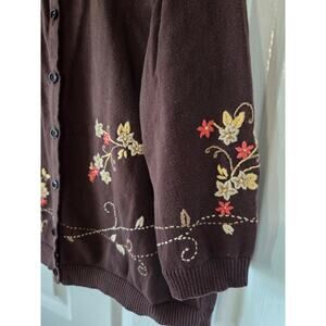 VTG Christopher & Banks XL Hand Embroidered Cardigan Fall Brown Floral