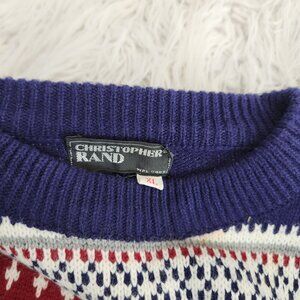VTG Christopher Rand Men's XL Acrylic Knit Ski Sweater Fairy Isle Birds Eye