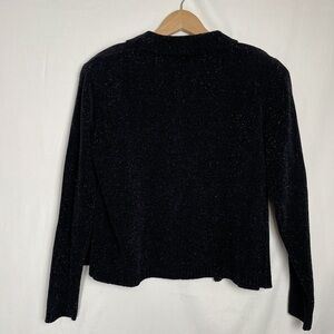 VTG Christopher&Banks Black collared Shimmer Crushed Velvet Button down Sweater