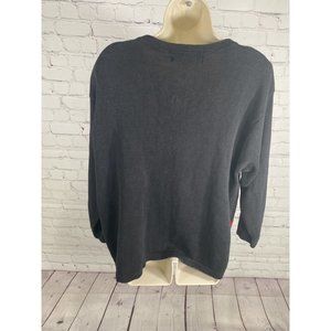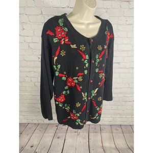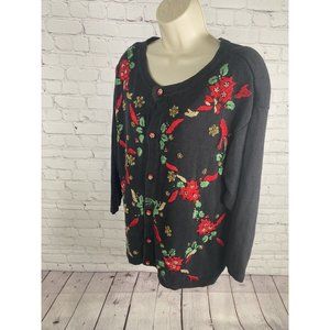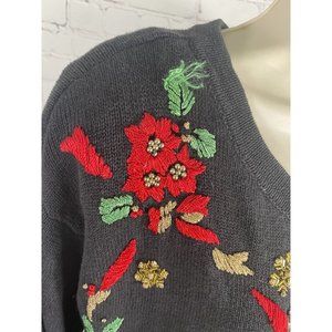 VTG Chrysantheme Black Poinsettia Embroidered Beaded Hand Knit Sweater 1X