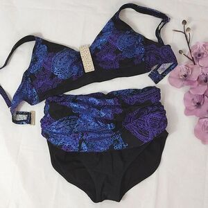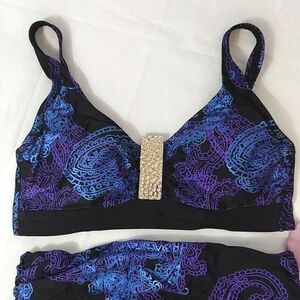 VTG Chuck Handy Black Purple Paisley High Rise Bikini Set Size 10 & 12 (Large)