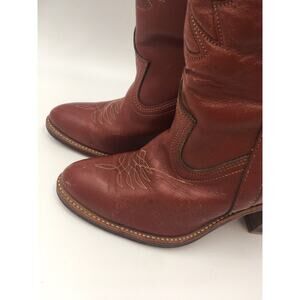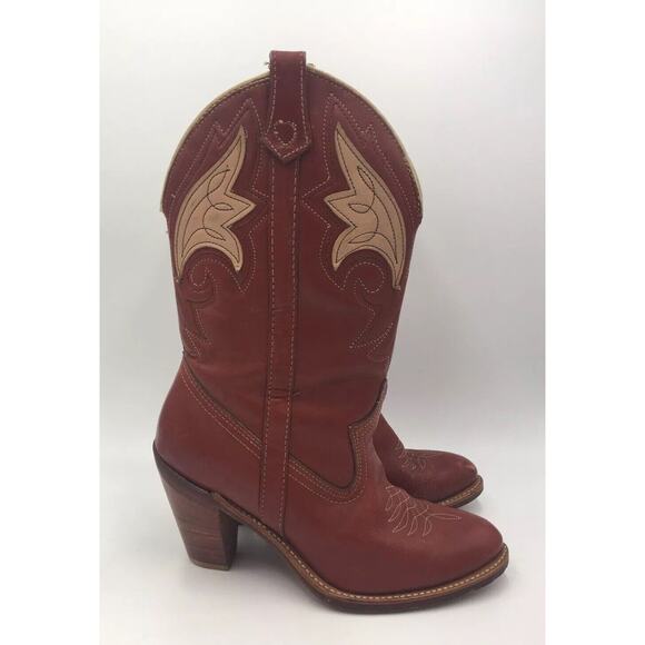 VTG Circle A Acme Tooled Leather Inlay Cowboy Boots Tulip Flower cowgirl Sz 7