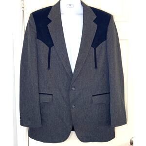 VTG Circle S, Texas Western, Rockabilly, Gray and Black yoke 42L Sport coat Men