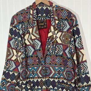 VTG Circle T Western Tapestry Blazer Jacket M Boho Geometric Aztec Ranchwear 90s