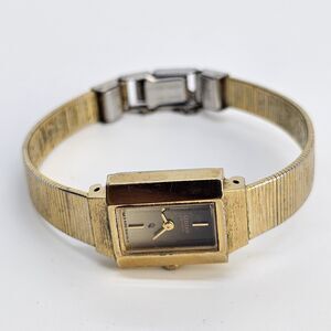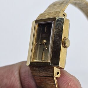 VTG Citizen Women's Watch 16MM Black Gold Dial Gold Band 6" New Battery