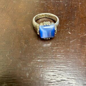VTG Claire's Silver tone Art Deco Style Ring with Blue Stone Sz 7.5