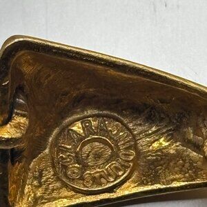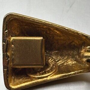 This Clara Studio bracelet showcases a striking geometric design in a brushed gold-tone finish, exuding a timeless vintage charm for collectors or enthusiasts.