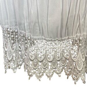 VTG Classique by Shawn Ivory Sheer Crinkle Pleated Crochet Hem Maxi Dress 276L