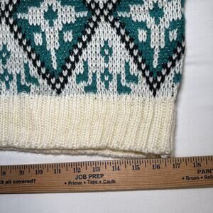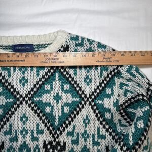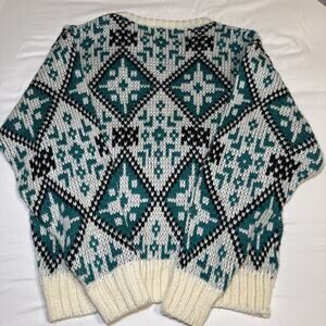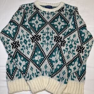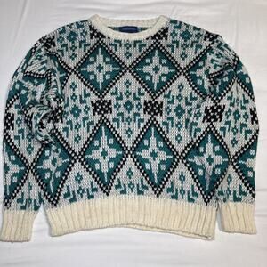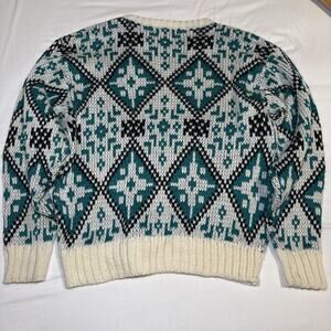 VTG Claybrooke Unisex Medium Sweater Cream Teal Navy Chunky Knit Long Sleeve