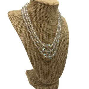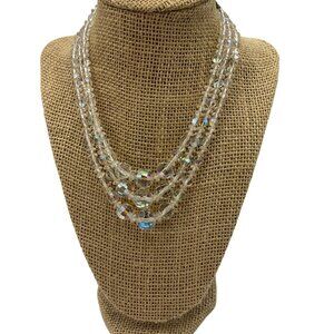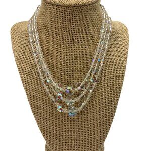 VTG Clear Aurora Borealis Crystal Multi-Strand Necklace Faceted Old Money Lady