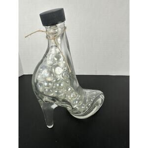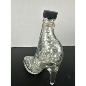 VTG Clear Glass Boot Stiletto Glass Slipper Shaped Empty Liquor Bottle w/Cap