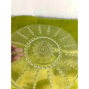 VTG Clear Pressed Glass Dots Bubbles 11" Rounded Square Dinner Plate