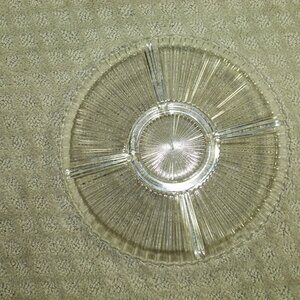 VTG Clear Pressed Glass Ribbed 5Part Divided Relish Serving Tray/Dish 10” Round