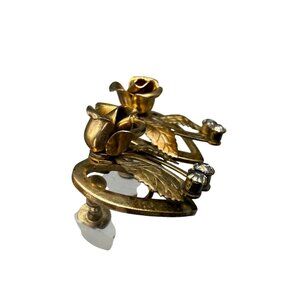 VTG Clear Rhinestone Rose Floral Leaf Screw Back Earrings Romantic Gold Tone