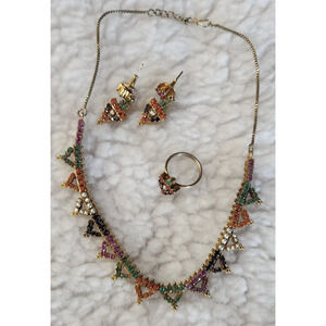 VTG Cleopatra Style Collar Beaded Statement Necklace, Ring & Earrings UNIQUE