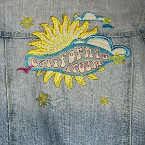 VTG Clockhouse California Dream Denim Jean Patch Jacket Sunshine Beach Waves Y2