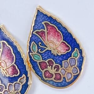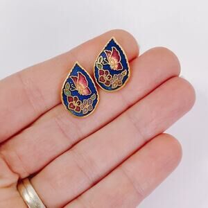 Butterfly and floral cloisonné studs that carry the deep color and fine detail of late 20th century enamel work. The teardrop form and layered hues create a timeless balance of artistry and everyday ease.