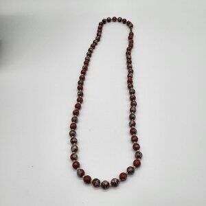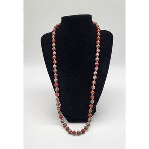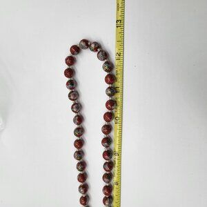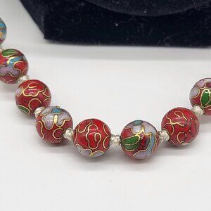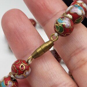 VTG Cloisonne Chinese Beaded Knotted Necklace Red Gold Floral
