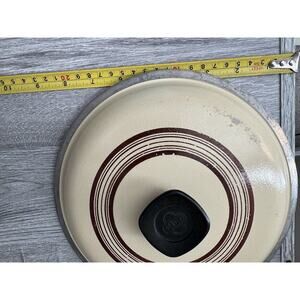 Vintage Club Aluminum lid, replacement pot lid, 10 inch Club cookware top, beige enamel cookware, retro pot lid, Club USA pan cover, mid-century kitchenware, Club pot lid replacement, enamel lid brown rings