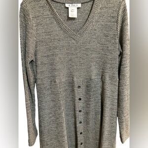 VTG Clues Collections Women’s Maxi V-neck Empire Babydoll Waist Functional Button Front Long Sleeve Black Gray Dress Sz XL Some Stretch Made in USA Clean Good Vintage Preowned Condition.