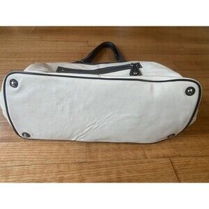 VTG Coach Beige & Navy Leather Tote Handbag With Kiss Lock Closure & Front Zip