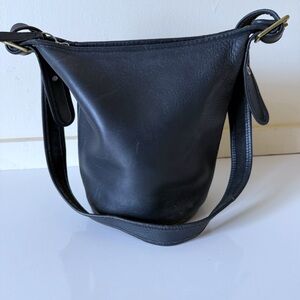 Vintage Coach Black Leather 9953 Helens Legacy Duffel Bucket Crossbody Shoulder Bag