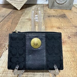 VTG Coach Black w/Black Leather Skinny Mini Signature Coin Purse Keychain Wallet