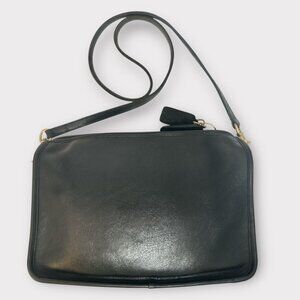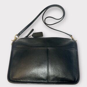 VTG Coach Companion Bag 9300 Dark Navy Leather Brass 80s NYC Purse Blavy + Tag
