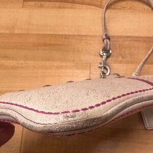 Vintage RARE Coach Limited Valentines edition Heart wristlet white leather w/pink nubuck suede leather heart pattern & silver studs. Pink stitching.