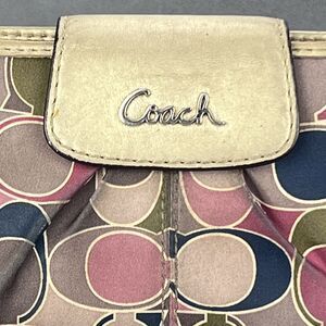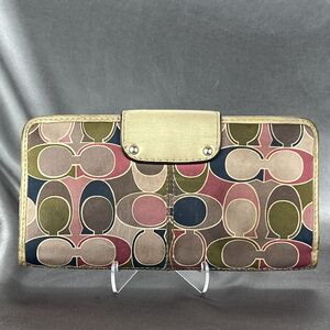 Vintage Coach Metallic Gold Pink Olive Blue Monogram Leather Wallet Credit Card Canvas Bifold Y2K