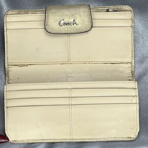 VTG Coach Metallic Gold Monogram Leather Wallet Credit Card Canvas Bifold Y2K